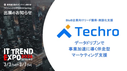 テクロ株式会社(所在地:東京都渋谷区、代表取締役:天野 央登、以下当社)が提供する「オウンドメディア支援」「LLMO/AIO対策支援」 は、株式会社イノベーション(東証グロース 証券コード3970)のグループ会社である、株式会社Innovation & Co.(本社:東京都渋谷区、代表取締役社長:幸 哲史、以下「Innovation & Co.」)が主催する業界最大級のオンライン展示会「ITトレンドEXPO2026 Spring」に出展します。