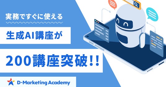 D-Marketing Academyでは、スタートアップから従業員1,000名規模の大企業まで、多種多様な業種・職種別の生成AI研修や、経営層向け「生成AI家庭教師」などを展開しています。提供するAI関連講座は、約200講座となり、生成AIの業務活用を支えるeラーニング基盤としての企業導入も拡大しています。