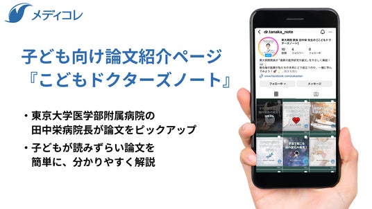 医療・ヘルスケアの情報安心化スタートアップ、株式会社メディコレ(東京都港区、代表取締役:橋本 礼次郎、以下「メディコレ」)は、東京大学医学部附属病院の田中栄病院長による、子ども向け論文紹介ページ