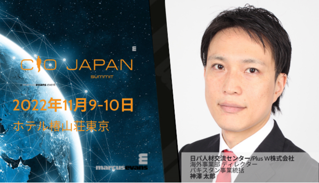 マーカス・エバンズ・イベント・ジャパン・リミテッド(本社:英国 / 日本支社代表:雪下 大輔、以下「マーカスエバンズ」)は、 2022年11月9日-10日にIT関連部門統括責任者向けビジネスサミット『CIO Japan Summit 2022』を開催します。今回、日パ人材交流センター/Plus W株式会社 海外事業部 ディレクター パキスタン事業統括 神澤 太郎氏をお迎えして基調講演を行います。