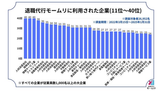 7職代行モームリに利用された企業ランキング11位~40位