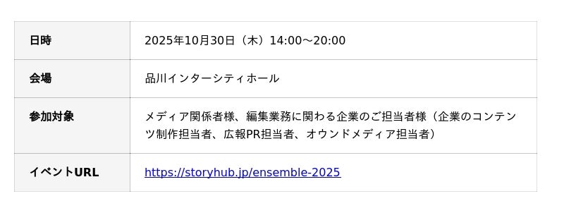StoryHub株式会社(本社:東京都千代田区、代表取締役CEO:田島 将太、以下、当社)は、初開催となるメディア担当者向けカンファレンス「StoryHub Ensemble 2025」を2025年10月30日(木)に開催しました。