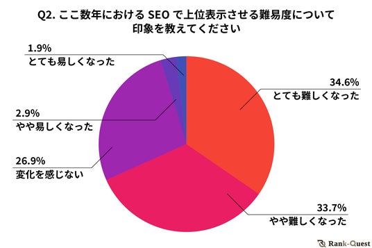 調査結果2. ここ数年におけるSEOで上位表示させる難易度について印象を教えてください