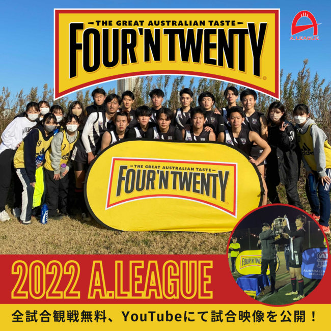 一般社団法人日本オーストラリアンフットボール協会(以下、AFL JAPAN)は6月2日(木)、Four'N Twentyブランドのミートパイを日本で展開する株式会社Patties FoodsとA.LEAUGEのスポンサー契約を結んだことを発表しました。