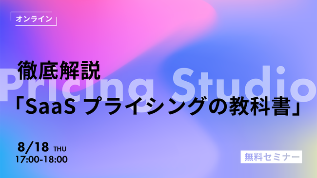オンラインセミナー 徹底解説「SaaSプライシングの教科書」(無料)を8月18日(木)17時に開催いたします。