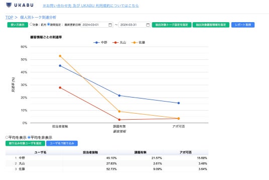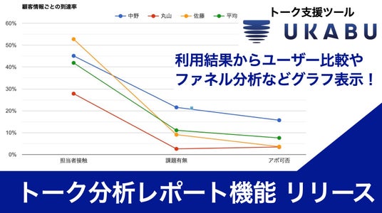 株式会社UKABU(東京都渋谷区 代表取締役:丸山 隼平)が提供するAI搭載のトーク支援ツール「UKABU(ウカブ)」 は、見ながら顧客対応をしたユーザーの利用結果ログから、トークスクリプトの様々な分岐点を簡単にグラフ表示し、集計・分析できる「トーク分析レポート機能」をリリースいたしました。