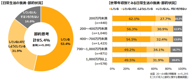 株式会社モニタス(本社:東京都港区、代表取締役社長:林 秀紀)は、20歳~64歳までの全国の有職者5,295名を対象に実施した「収入と節約に関する調査」の結果をご報告いたします。