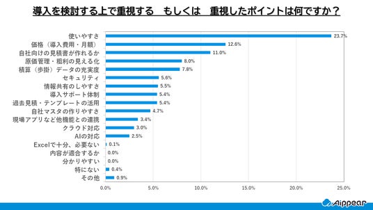 今後は、見積業務の標準化を支援するツールだけでなく、操作性が高く、選定から導入、運用開始後までサポートが充実しているシステム・ソフトが、現場部門・管理部門の双方からより一層求められていくと考えられます。