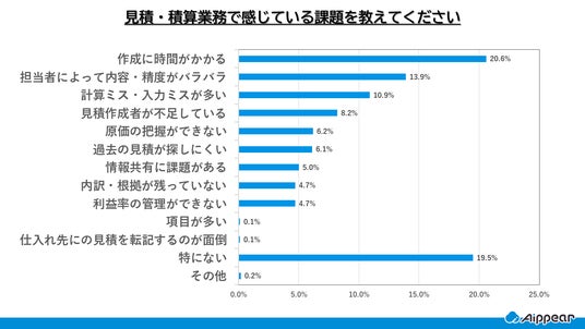 - 見積・積算業務における最大の課題は「見積作成に時間がかかる」(20.6%)