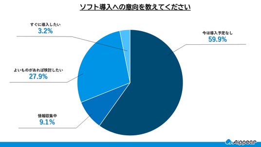 ソフトを導入していない回答者に対して、さらに今後の導入の意向について調査しました。