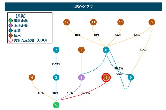 当該企業のデータ取得を行うことで、上の図のようにグラフで支配関係を明らかにすることができます。