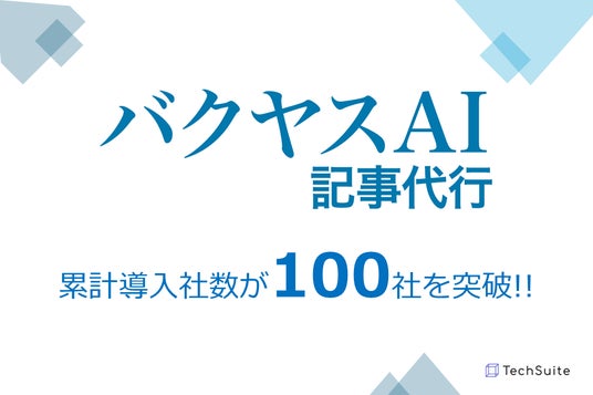 TechSuite株式会社(本社:東京都千代田区神田錦町、代表取締役:畠山夏輝)は、生成AIを活用したSEO記事作成代行サービス「バクヤスAI 記事代行」の累計導入社数が100社を突破したことをお知らせいたします。