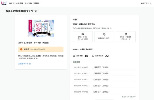 教職員は専用ページから応募フォームのQRコードを発行し応募者に共有します。応募者は共有されたURLから作品をアップロードすることで、所属する団体からの応募としてエントリーが認識されます。また応募者が児童やパソコンが苦手な生徒のケースにおいても、保護者や教職員が代理入力することで応募を完了することができます。