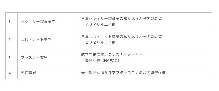 <台湾バッテリー製造業の振り返りと今後の展望—2020年上半期>