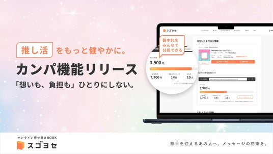 株式会社iUM(本社:東京都渋谷区、代表取締役:藤川大詩)が運営するオンライン寄せ書きBOOKサービス『スゴヨセ』は、近年拡大を続ける「推し活」利用を支援する新機能「カンパ機能」を、2026年3月9日(月)より提供開始いたします。