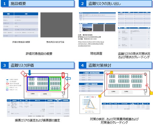 このような背景のもと、TdRでは、再生可能エネルギー領域に関する2,000件以上のリスク評価実績や、事業所における盗難リスク評価実績により得られた経験を活かし、太陽光発電施設盗難リスク評価および対策提案サービスを開始しました。