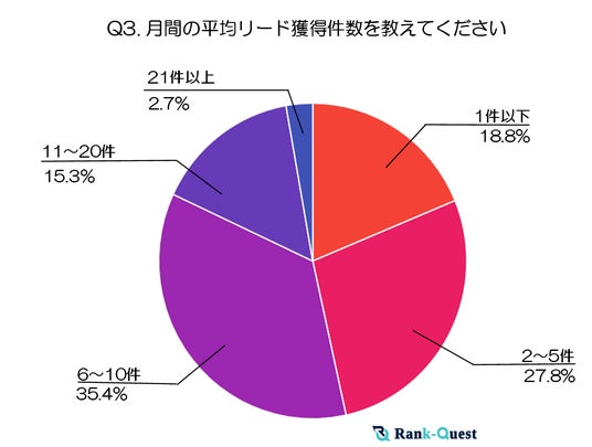 これらの結果から、多くの回答者が月間リード獲得件数を6~10件程度と認識していることがわかります。一方で、1件以下や2~5件と回答した人も多く、リード獲得の成果が安定していないケースが見られる可能性があります。
