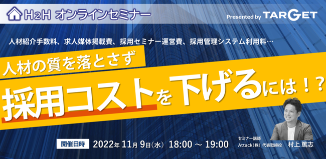 採用支援サービス『TARGET』などを展開するAttack株式会社(本社:東京都品川区、代表取締役:村上篤志)が経営者や採用責任者の方を対象とし、採用活動における予算管理やコスト削減に焦点を当てた無料オンラインセミナーを2022年11月9日(水)に開催致します。