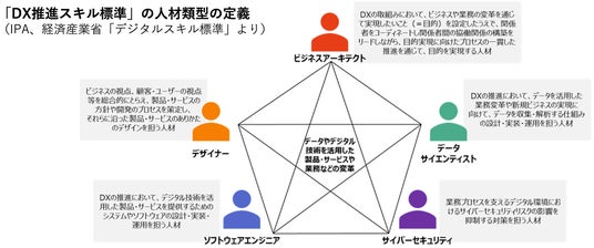 Reスキル講座の認定対象は、従来、技術・システム関連の講座のみに限定されていましたが、2022年12月に、「DX推進スキル標準」が見直されたことにより、人材類型の定義にも「デザイナー」が追加されました。顧客・ユーザーの視点でビジネスを捉えることがますます重要視されるようになりました。