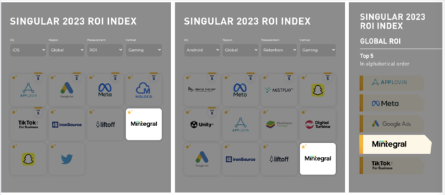 Singularは2月27日、ROI Index 2023のランキングを発表しました。そして、Mintegralはグローバルなトップアドネットワークとして、最も多くのランキングと南米などの主要新興市場で突出したパフォーマンスを持つアドネットワークの