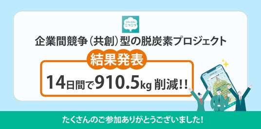 株式会社Linkhola(本社:東京都港区、代表取締役:野村恭子)は、6月の環境月間に「企業間競争(共創)プロジェクト」を開催しました。14日間のチャレンジ期間で合計18社の参加企業の取り組みにより、計910.5kgのCO2削減、想定のCO2排出量より43%も削減が出来ました。