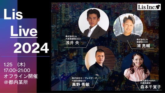 株式会社Lis株式会社Lis(ヨミ:リス、所在地:東京都渋谷区、代表取締役:浅井央)は、創業3周年を記念した初のオフラインイベント「Lis LIVE 2024」を共催いたします。