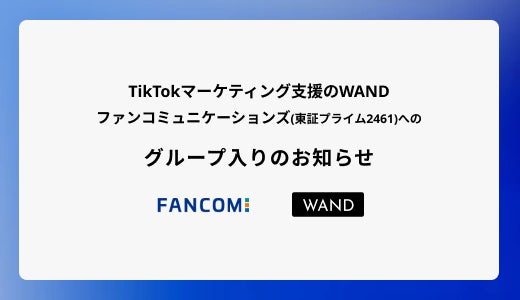 TikTokマーケティング支援のWAND、「A8.net」運営のファンコミュニケーションズ(東証プライム2461)へのグループ入りのお知らせ | 株式会社WANDのプレスリリース (
