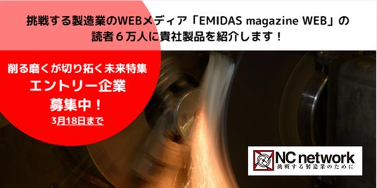 製造業ビジネスマッチングプラットフォーム「エミダス」を運営する 株式会社NCネットワーク(本社:東京都台東区、代表取締役社長:内原 康雄)は、このたび、【削る磨くが切り拓く未来特集】へのエントリーを募集開始しました。