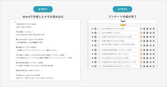 Wordにまとめたメモでも作成が可能。アンケートや調査票のフォーマットでなくてもアンケート作成できます。
