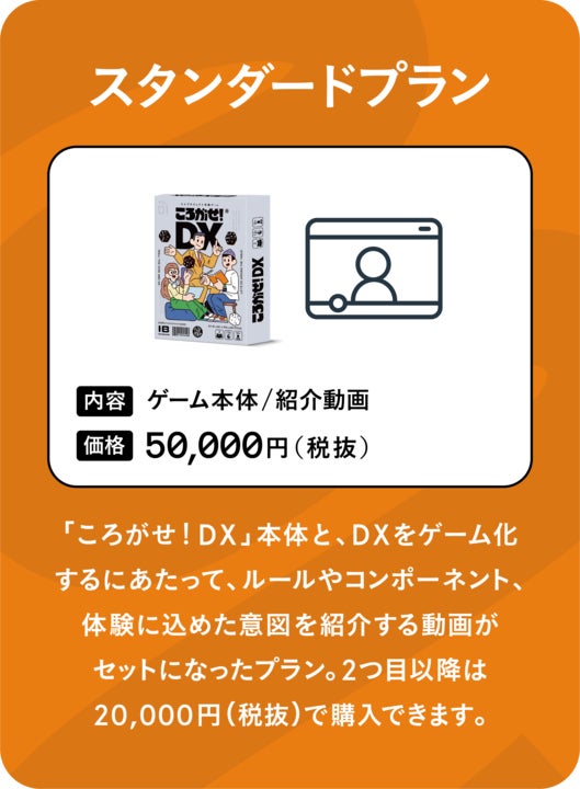 ゲーム本体と紹介動画をセットにしたプランです。DXに関する研修や社内コミュニケーションのツールとして、ご活用いただけます。