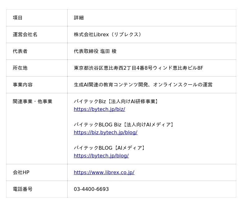 https://generative-ai.bytech.jp/■ 企業情報