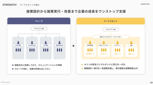 『マーケスポット』は、「なぜこの施策をやるのか?」という問いから始まる本質的なマーケティングBPO支援を重視しています。