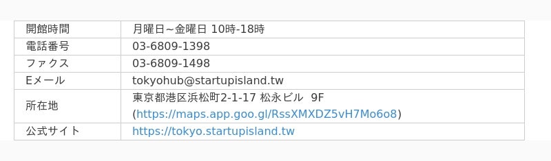 「Startup Island TAIWAN Tokyo Hub」が提供する主なサービスには以下が含まれます: