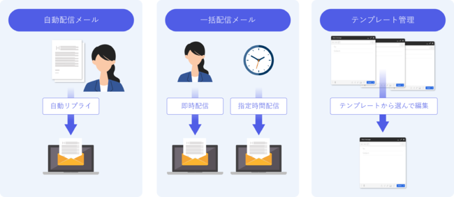 エントリー受付完了メールはもちろんのこと、配信前のリマインドメールや御礼メールなどもタイミングを設定することによって自動で配信されます。デフォルトの文章も用意しているため、メール配信業務への時間を大幅にカットできます。また、メールの文面もテンプレートを多数ご用意しております。