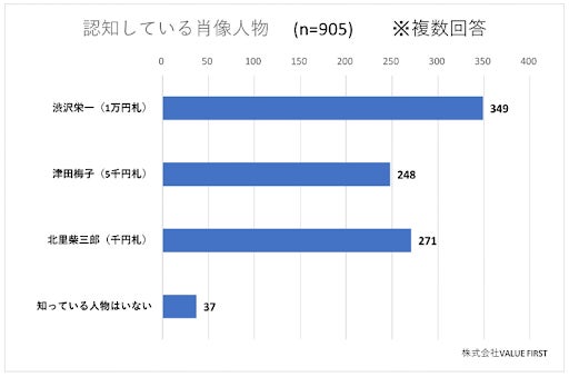 回答者の8割以上が「渋沢栄一(1万円札)」を知っていると回答。