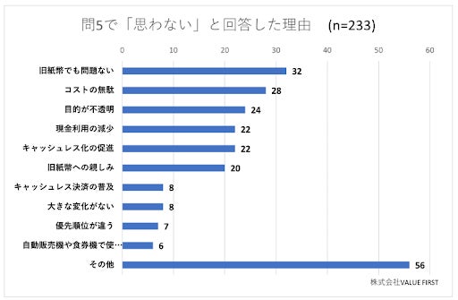 半数以上が「新紙幣に変える必要はなかった」と回答