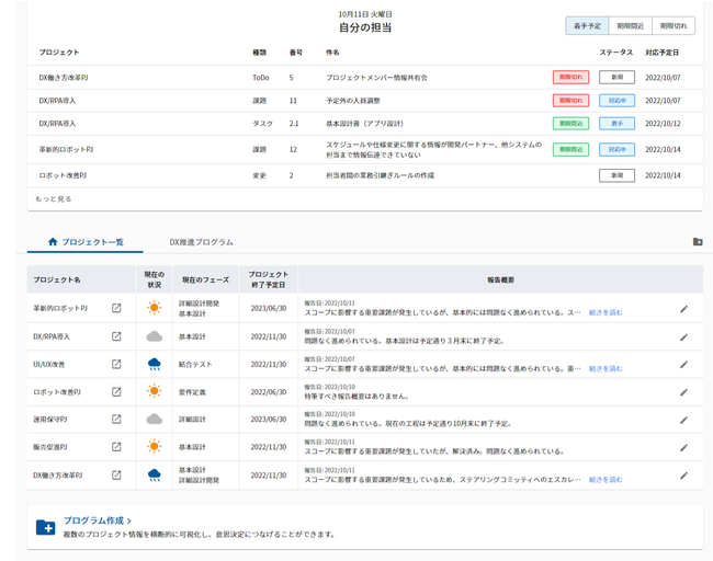 特徴2:プロジェクト情報を集約したダッシュボード