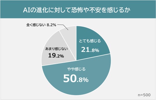 「AIの進化に対して恐怖や不安を感じると回答した人は、「とても(21.8%)」「やや(50.8%)」を合わせて72.6%でした。