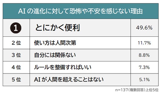 ・AIの進化に対して恐怖や不安を感じない理由は「とにかく便利」