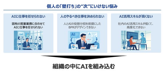 AIに仕事を任せられない:自社固有の営業プロセスに合わせてAIに業務を委任する設計ができていない。