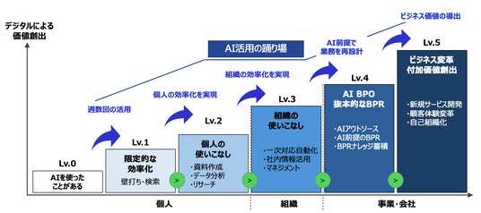 https://finchone.net/■ 背景:個人の「壁打ち」から、組織の「価値創出」へ生成AIの急速な普及により、個人レベルでの業務効率化は大きく進みました。しかし多くの企業が、資料作成・検索・壁打ちといった「個人の効率化(Lv.1~2)」から抜け出せず、組織全体でAIを活用してビジネスモデルを変革する「Lv.4~5のAI前提BPR(業務再設計)」への到達が依然として大きな課題となっています。
