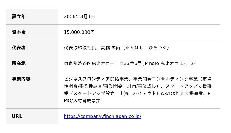 株式会社フィンチジャパン グローステック部広報担当(info@finchjapan.co.jp)