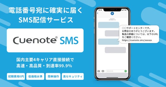 Cuenote SMSCuenote SMSは、携帯電話番号のみでメッセージの送受信ができるショートメッセージサービスの一斉配信ができるシステムです。国内4大キャリア(docomo、au、SoftBank、楽天モバイル)との直接接続(直収)による正規ルートで、高品質なSMS配信を行えるクラウドサービス(ASP・SaaS)です。