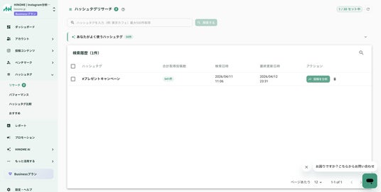 担当者が単純作業に追われる時間は、本来費やすべきクリエイティブ戦略の立案や競合分析、ファンとの本質的な対話のための時間を奪っています。これらの「見えないコスト」を解消し、運用の分断を排除することこそが、企業のSNS戦略をデータドリブンな変革へと導く鍵となります。『HINOME』が提示する第一の解決策が、キャンペーンの熱量を精密に捕捉する「ハッシュタグリサーチ機能」です。