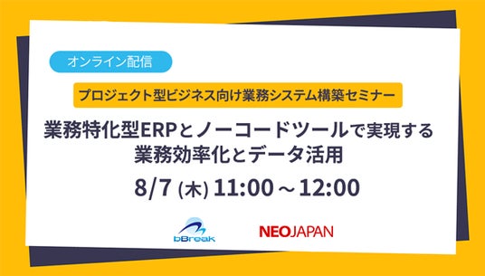 クラウドERP「MA-EYES」を提供している株式会社ビーブレイクシステムズ(本社:東京都品川区、代表取締役:白岩次郎、以下「ビーブレイクシステムズ」)は、株式会社ネオジャパンと共催で「プロジェクト型ビジネス向け業務システム構築セミナー“業務特化型ERPとノーコードツールで実現する業務効率化とデータ活用”」と題したウェブセミナー(オンラインセミナー)を2025年8月7日(木)に開催いたします。