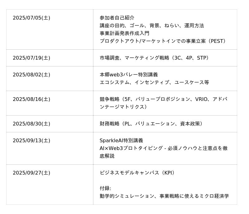 第一期(2025/7/1~2025/9/30):事業計画策定に必要な知識のインプット