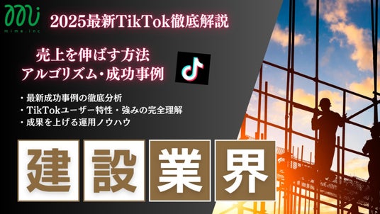 株式会社マイム(本社:東京都品川区、代表取締役社長:古川 湧一、以下「当社」)は、建設業界の皆様を対象に「2025年版TikTokトレンドレポート」を公開いたしました。本レポートは、TikTokを活用した最先端のプロモーション事例や成功パターン、そして結果に直結する戦略的な運用ノウハウを一冊に集約。
