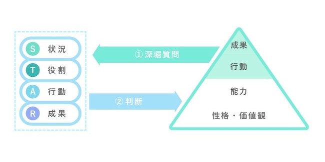 状況・役割・行動・結果に分けて質問を行う手法です。GoogleやAmazonで使われる採用手法としても注目されています。