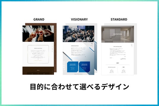 利用シーンを想定した今回の新テンプレートでは、より目的にマッチした世界観をデザインに落とし込みました。イベント招待の業務効率化を行いながら、ゲストへの上質なおもてなしを可能にするテンプレート3種となっています。