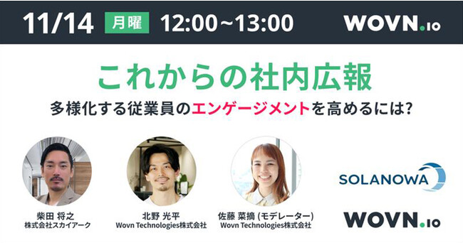 株式会社スカイアーク(本社:東京都千代田区丸の内、代表取締役:平栗健太郎、以下スカイアーク)が提供するWeb社内報アプリ「SOLANOWA(https://solanowa.jp/)」は、Wovn Technologies株式会社(本社:東京都港区、代表取締役社長:林 鷹治、以下 WOVN)が提供するWebサイト多言語化ソリューション「WOVN.io」と共に、グローバル企業における言語の壁をなくし、従業員エンゲージメントの向上を促進するための業務提携について合意しました。